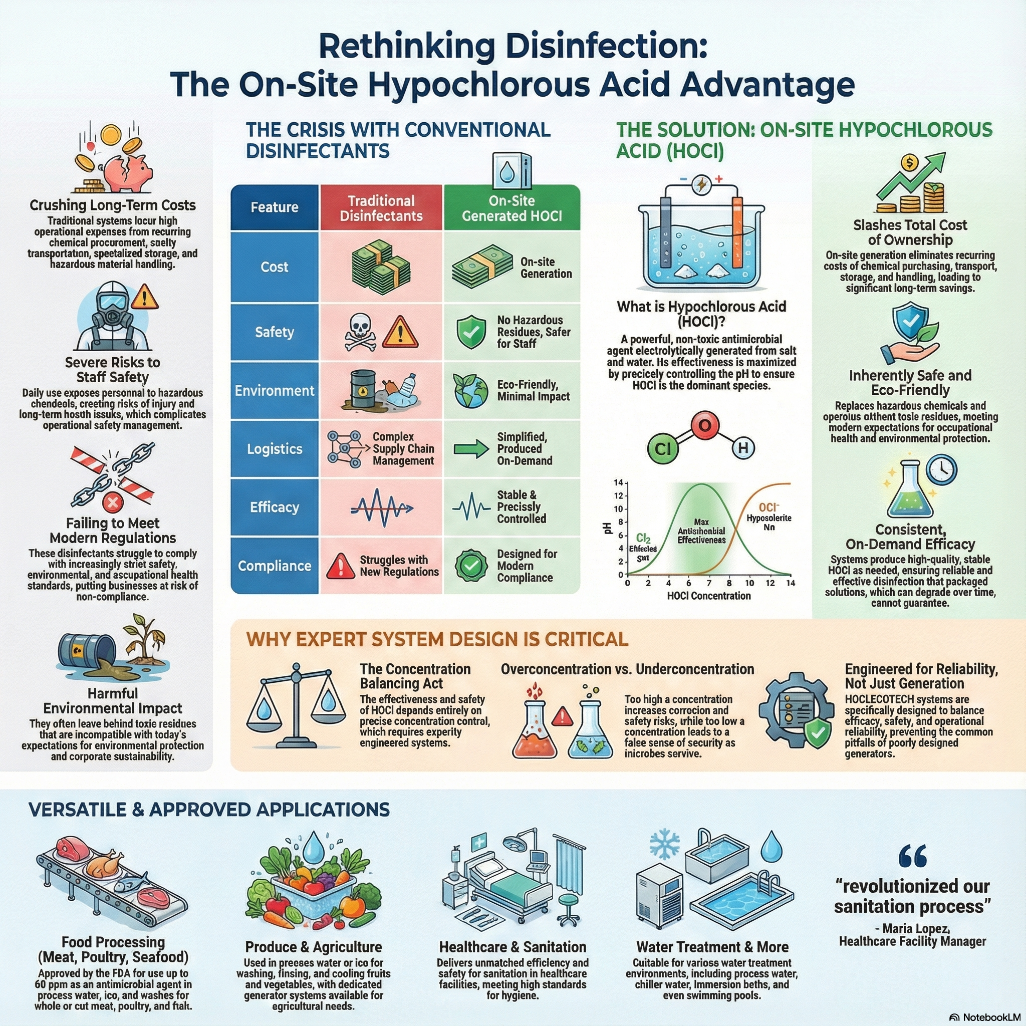 Efficient hypochlorous acid system for food processing facilities. Ensures hygiene and compliance with industry standards.